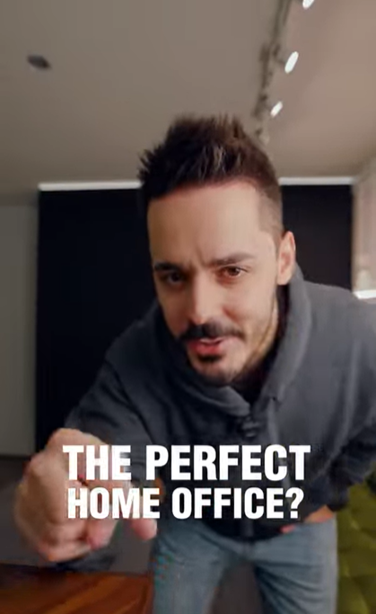 1. Conversational Hook = Instant Authority - The opening line, “The perfect home office?” said directly to the camera with finger gesture, instantly triggers curiosity and authority. It mimics the natural pattern of advice-giving, positioning him as the “guide” archetype. This conversational entry makes viewers subconsciously commit to hearing the verdict.