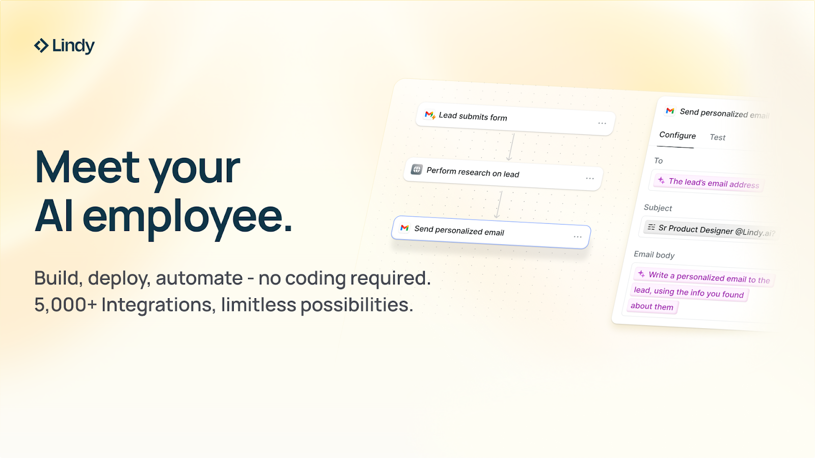 Imagine if ChatGPT, Zapier, and Webflow all had a baby. That's Lindy.