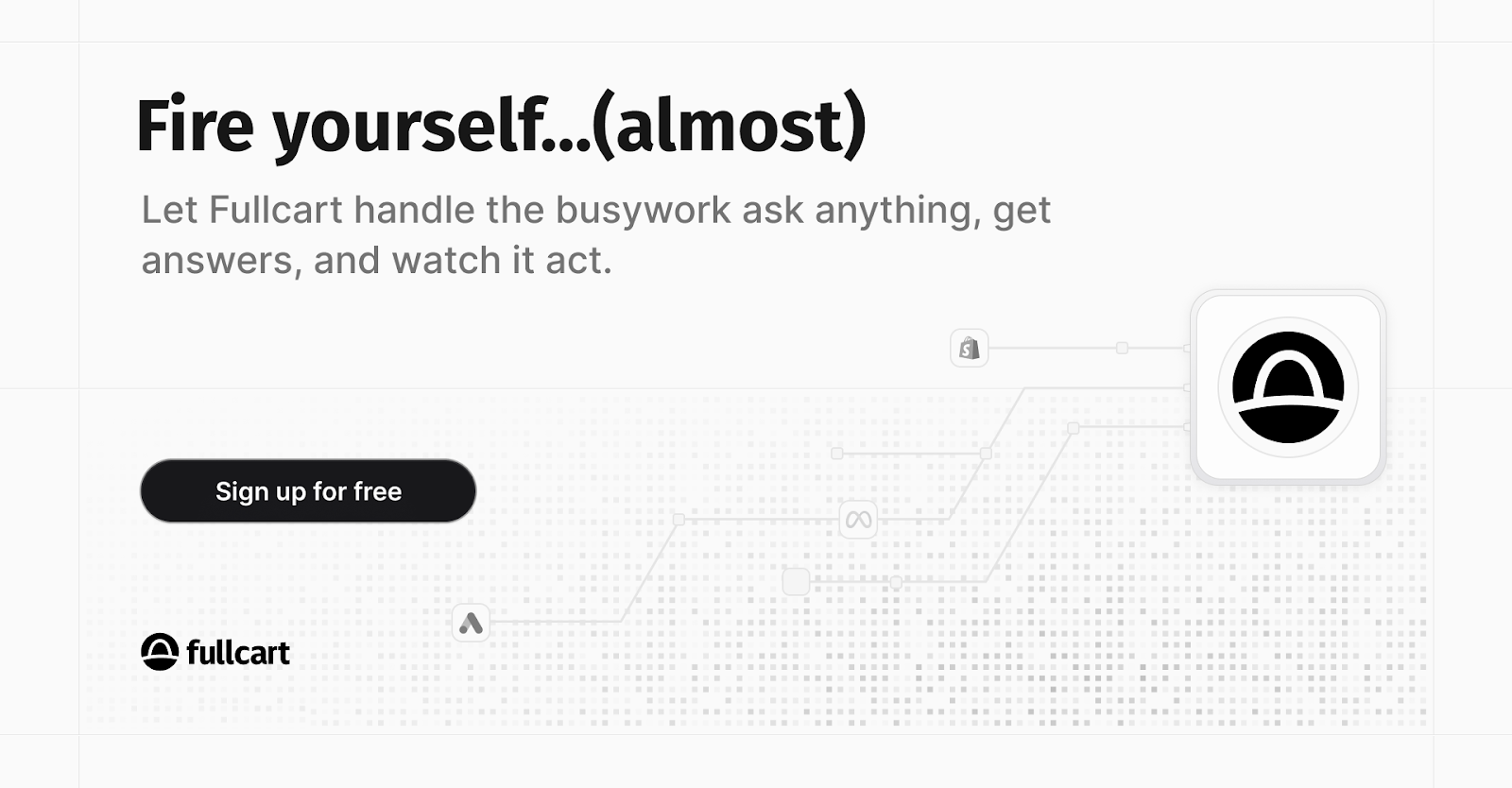Fullcart is the AI Operator that brings your data, ads, and ops together into one intelligent system that analyzes, answers, and fixes whatâs broken before you notice.