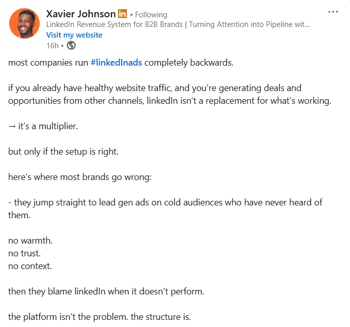 ⚡ LinkedIn ads work when you sequence trust before conversion