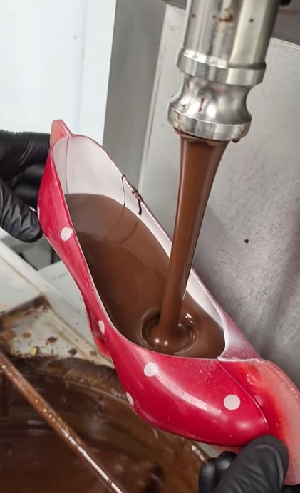2. Edible-illusion reveal - The pivot from “shoe mold” to liquid chocolate triggers an aha moment (object → food identity shift). Surprise + recognition is catnip for shares. Design a reveal where the object becomes something unexpected but desirable.