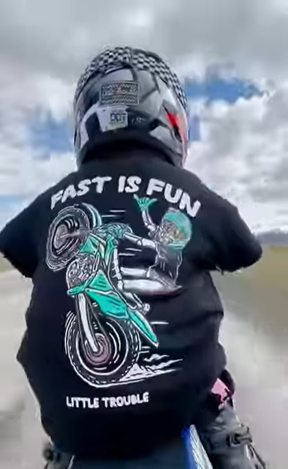 1. Shock of Scale + Identity Clash - The first second disorients you, a tiny kid on a serious Yamaha dirt bike, in full gear, on an open road. The visual tension between youth and power instantly hooks the scroll-stopper reflex. Itâs not just cute; itâs aspirational rebellion in miniature form.