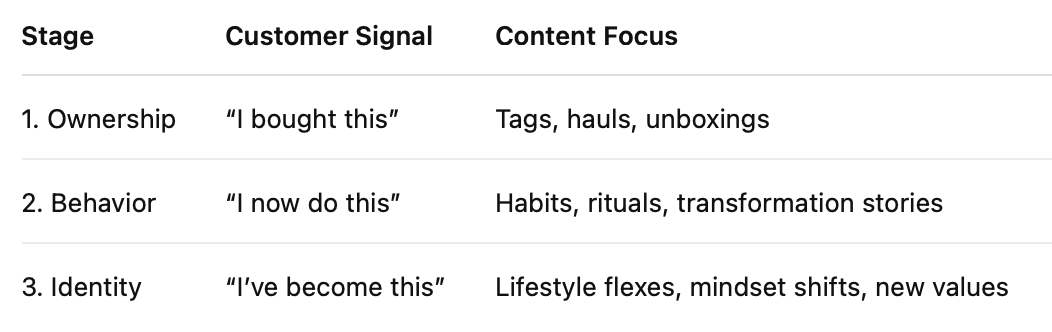 Most brands stop at Stage 1. Smart operators build loops around Stage 2–3, where social proof feels like personal evolution.